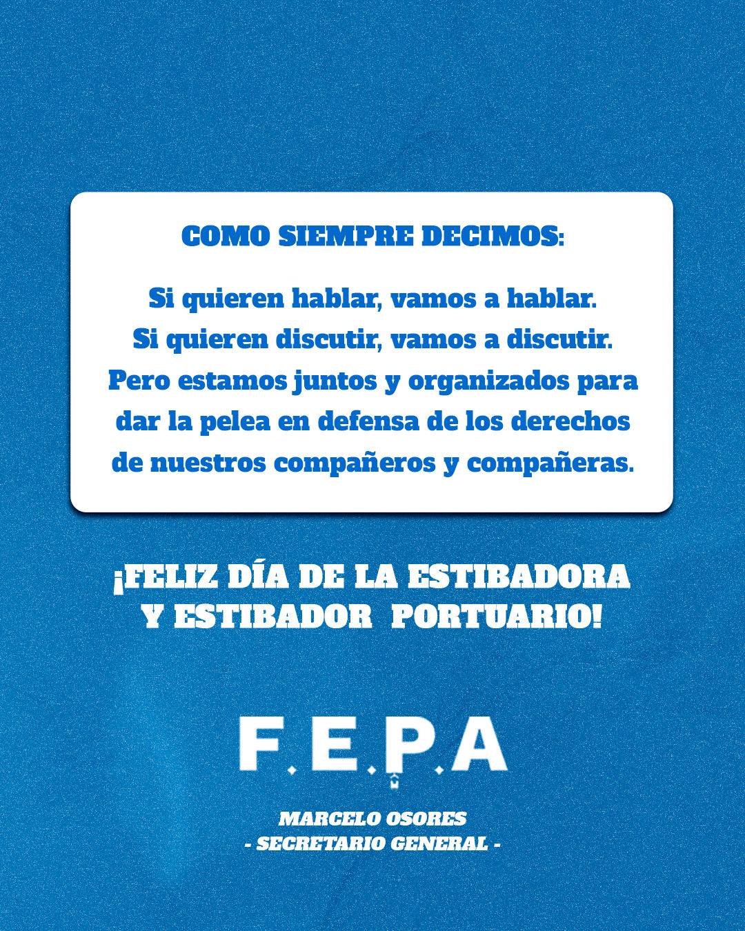 Hoy en nuestro día desde la Federación de Estibadores Portuarios Argentinos (FEPA), saludamos con orgullo a todas y todos los estibadores y estibadoras de cada puerto del país.