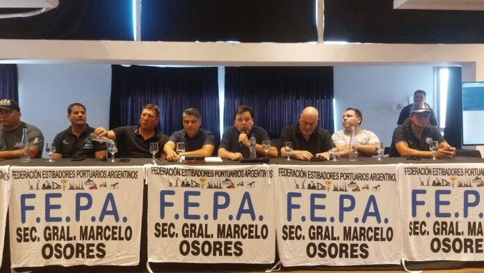 Marcelo Osores sostuvo durante el encuentro que si bien aún no se conocen documentos oficiales la etapa exige preparación, información y unidad en todo el territorio. Además, durante el encuentro con los Estibadores Rosarinos, comentamos sobre el despliegue de la agenda federativa que desarrollamos en Bahía Blanca, Puerto General San Martín, Caleta Paula, Mar del Plata y otros puertos claves.
